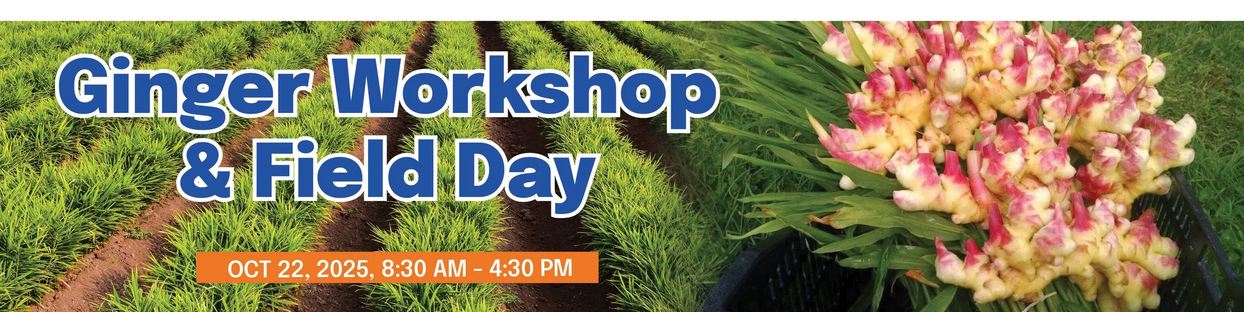 This event provides basic information and research updates on ginger, Topics include sustainable field and high tunnel ginger production, ginger seed production, integrated pest management, marketing, post harvest, and health benefits. A field tour to field, high tunnel and greenhouse ginger research and demonstration on Randolph Farm will be provided. The target participants of this event are interested growers as well as extension educators.