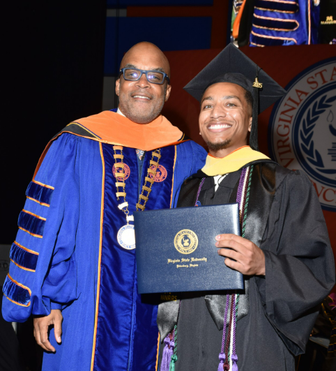 Tiquan Goode did not set out to become a Trojan. Growing up just 45 minutes south of VSU, it felt too close to home to Goode, who started college in 2018 at George Mason University. However, George Mason turned out to be a poor fit for Goode, who says, “I didn’t feel a sense of belonging there, and had a rocky start.” Wanting to find a better place for himself, Goode moved back to Brunswick County and worked full-time for several years, while simultaneously putting his energy into various youth, family and community engagement projects. Goode’s passion for community development inspired him to consider enrolling at a different four-year institution, and by chance, he found his home at VSU. “I made an impromptu work trip to President Makola Abdullah’s office in January 2023,” Goode recalls. “The hospitality and familial reception he provided during my visit let me know I needed to make VSU my home on the Hill.”