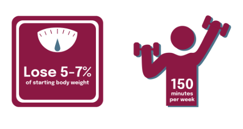 The goals of the program are for participants to lose 5-7% of starting body weight and to achieve and maintain at least 150 minutes of moderate physical activity a week. Achieving these two goals has been proven to reduce the risk of developing diabetes and promote overall health.